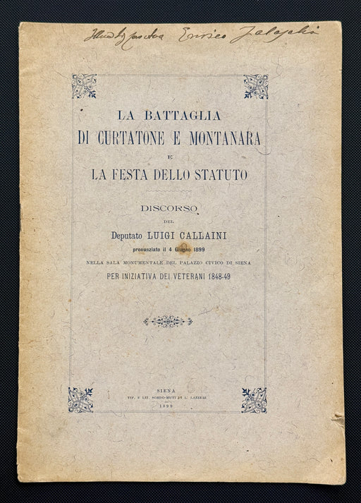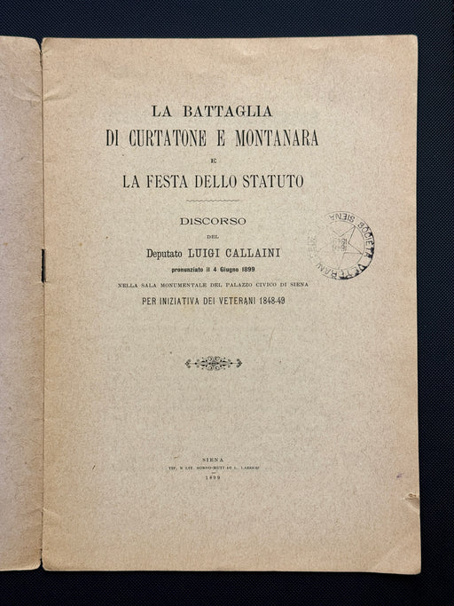 "La battaglia di Curtatone e Montanara discorso Luigi Calliani" libretto Tipografia Sordomuti Siena 1899