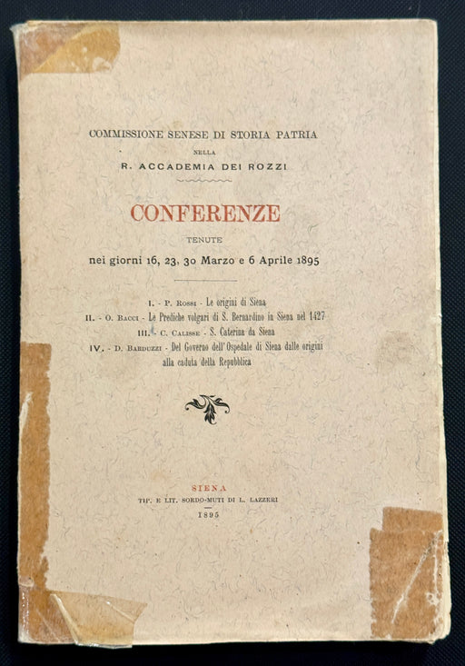 "Conferenze Accademia dei Rozzi Origine di Siena" libro Tipografia Sordo Muti Siena 1895