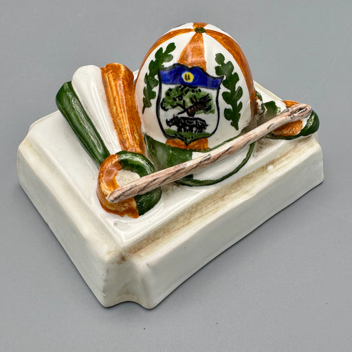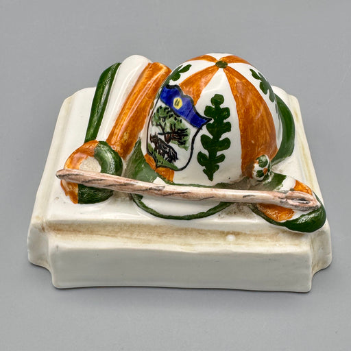 Prezzo originale €0,00 - Prezzo originale €0,00Prezzo originale€0,00€0,00 - €0,00Prezzo attuale €0,00| /Ceramica policroma delle ceramiche Bonci di Siena raffigurante spennacchiera zucchino e nerbo della Contrada della Selva.