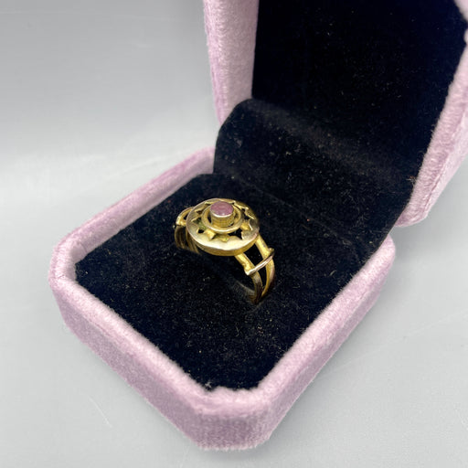 Prezzo originale €0,00 - Prezzo originale €0,00Prezzo originale€0,00€0,00 - €0,00Prezzo attuale €0,00| /Anello in oro basso 9t montatura su piccola pietra, probabile ametista. Peso 2,2 grammi.