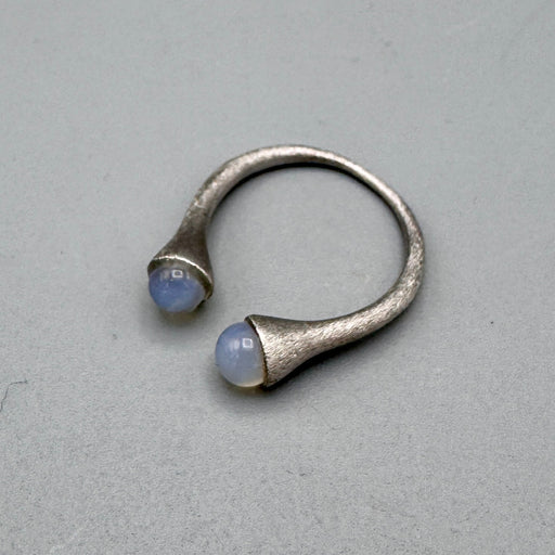 Anello stile vintage argentato sfere vetro Murano azzurre Italia 2020 ca