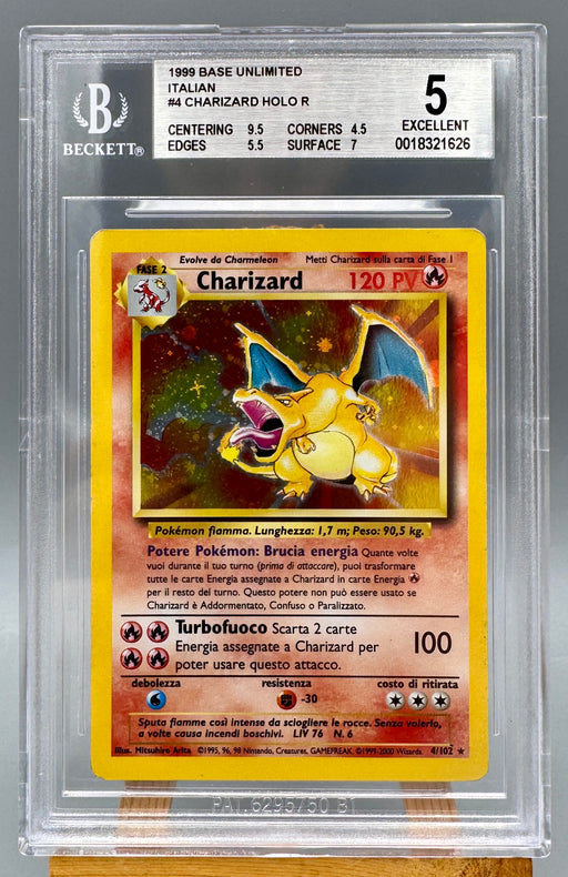 BGS 5 Charizard 4/102 Pokemon Card Ita Set Base Unlimited gradata Beckett