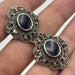 Orecchini floreali in argento titolo 925 ed onice centrale.