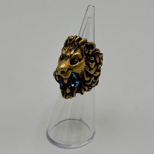 Gucci anello mod. Testa Leone metallo dorato con pietra azzurra 2020 ca