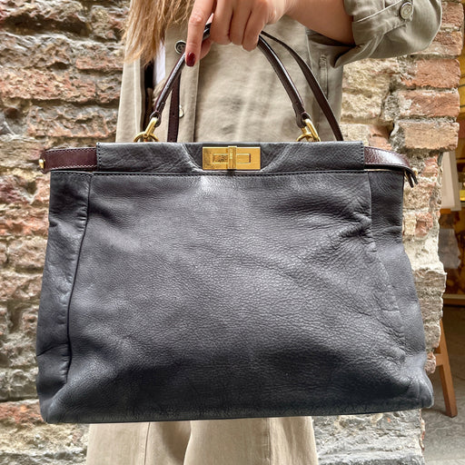 Prezzo originale €1.200,00 - Prezzo originale €1.200,00Prezzo originale€1.200,00€1.200,00 - €1.200,00Prezzo attuale €1.200,00| /Originale borsa Fendi Peekaboo in pelle di bufalo nera taglia med.