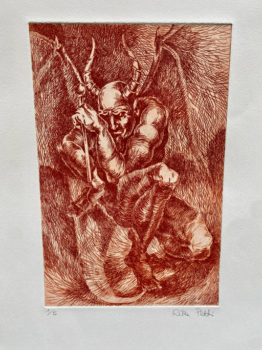 Prezzo originale €200,00 - Prezzo originale €200,00Prezzo originale€200,00€200,00 - €200,00Prezzo attuale €200,00| /Multiplo d'arte dell'artista Senese Rita Petti, soggetto il Diavolo realizzato in punta secca, numerazione 1/5.