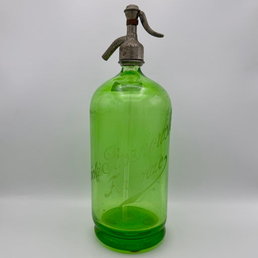 Seltz sifone Società Paszkowski Firenze vetro verde Italia 1924