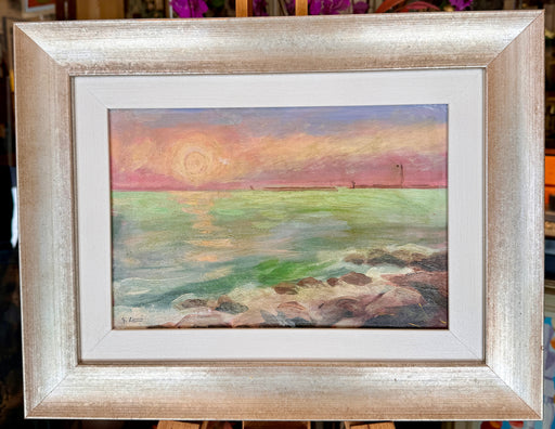 Prezzo originale €0,00 - Prezzo originale €0,00Prezzo originale €0,00€150,00€150,00 - €150,00Prezzo attuale €150,00| /Opera unica del Maestro Giovanni Lomi, olio su tavola raffigurante tramonto sul mare di Livorno. Opera da noi incorniciata.