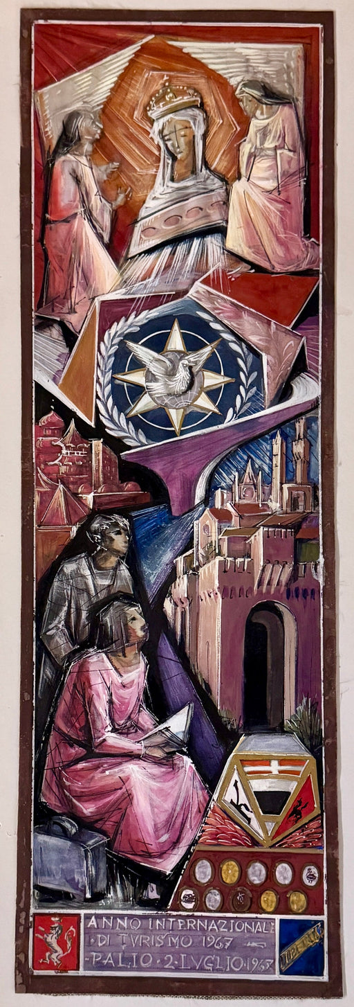 Prezzo originale €250,00 - Prezzo originale €250,00Prezzo originale€250,00€250,00 - €250,00Prezzo attuale €250,00| /Opera unica del Maestro Mireno Celso Ermini, bozzetto di Palio non scelto del 2 Luglio 1967, la commissione premiò l'opera di Ezio Pollai vinta dal...