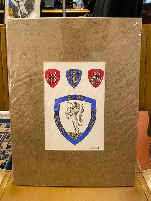 Prezzo originale €250,00 - Prezzo originale €250,00Prezzo originale€250,00€250,00 - €250,00Prezzo attuale €250,00| /Bozzetto preparatorio raffigurante lo stemma e compagnie militari della Contrada del Leocorno per il libro “Stemmario Senese” edito dalla Betti edi...