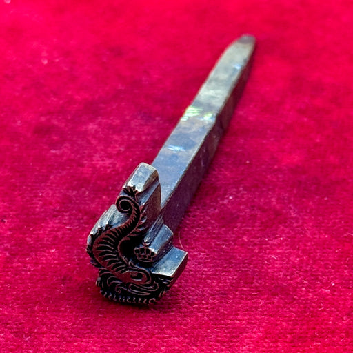Prezzo originale €30,00 - Prezzo originale €30,00Prezzo originale€30,00€30,00 - €30,00Prezzo attuale €30,00Punzone da pelle in ottone (bronzo?) raffigurante araldica della Nobile Contrada del Nicchio.