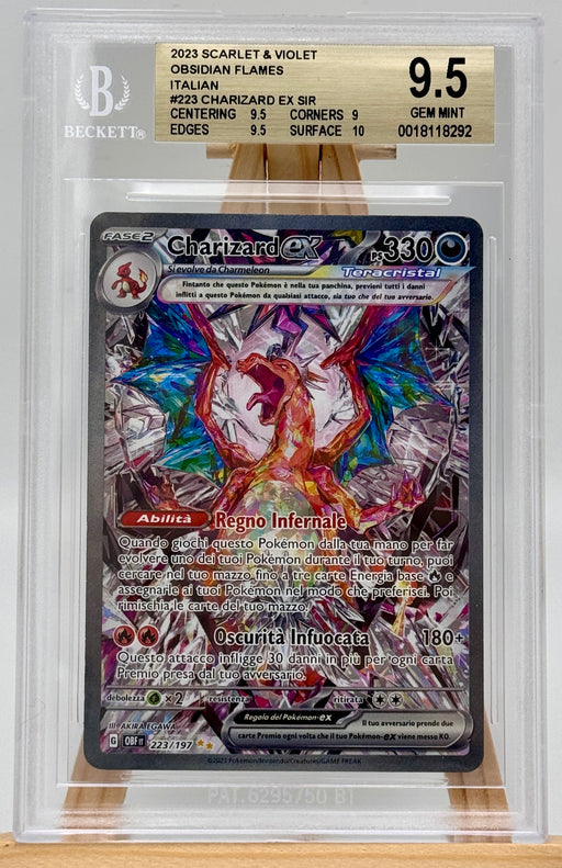 BGS 9.5 Charizard ex 223/197 Pokemon Card Ita Ossidiana Infuocata gradata Beckett 2023