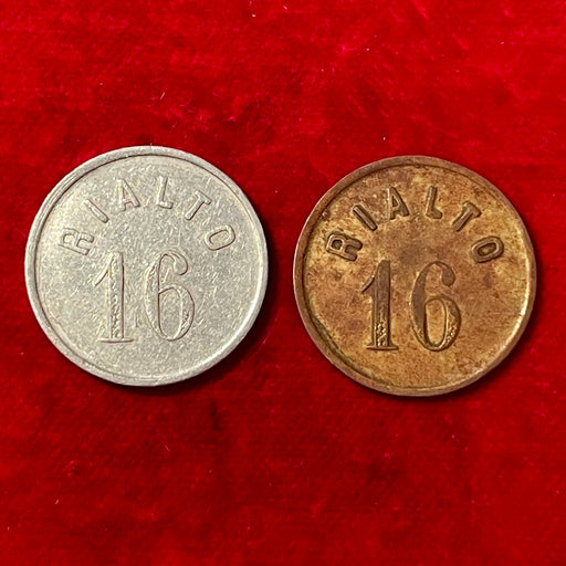 Prezzo originale €0,00 - Prezzo originale €0,00Prezzo originale€0,00€0,00 - €0,00Prezzo attuale €0,00| /Coppia gettoni diversi della casa di tolleranza di Siena sita in Via Rialto 16.
