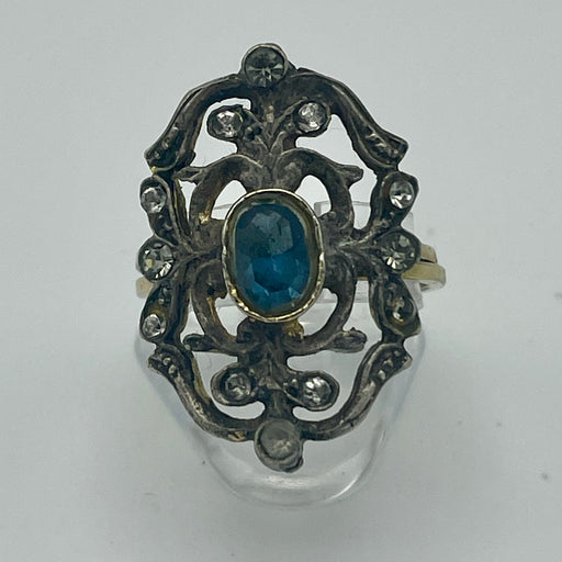 Anello pietra blu floreale argento 800 Italia 1950 ca