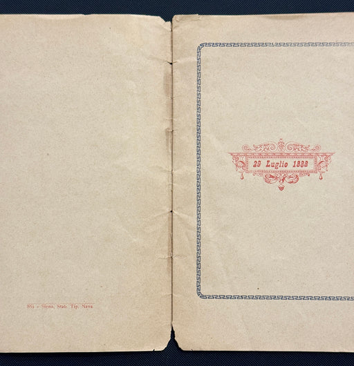 Raro libretto edito dallo Stabilimento Tipografico Carlo Nava di Siena per la Nobile Contrada dell'Oca. Pubblicazione completa.
