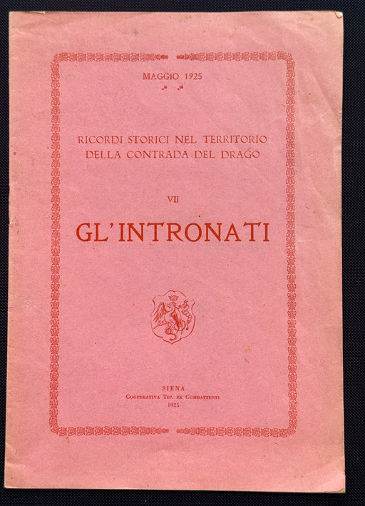 • "Gl' Intronati - ai Protettori" libretto Contrada del Drago Siena 1925