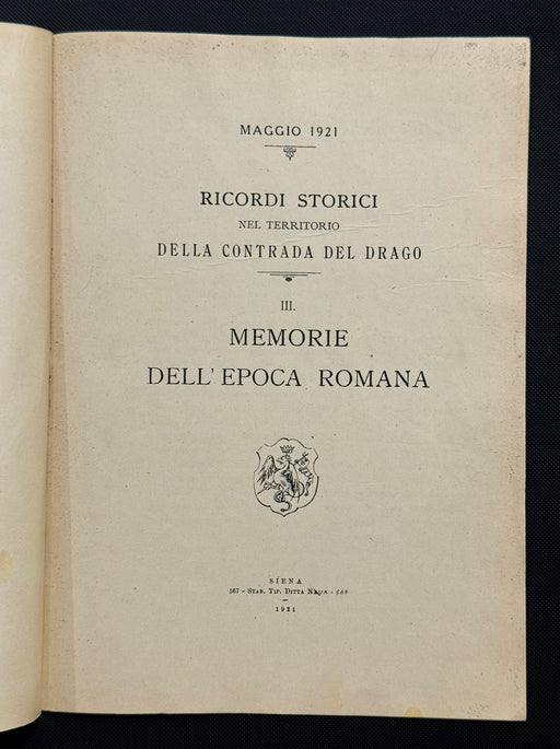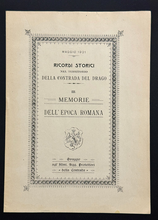 • "Memorie dell'Epoca Romana - ai Protettori" libretto Contrada del Drago Siena 1921