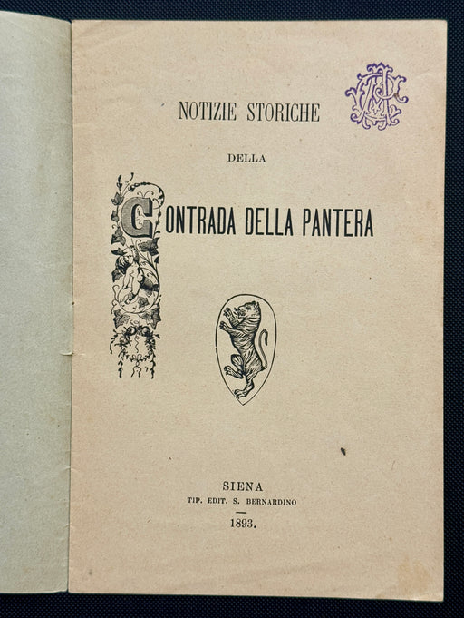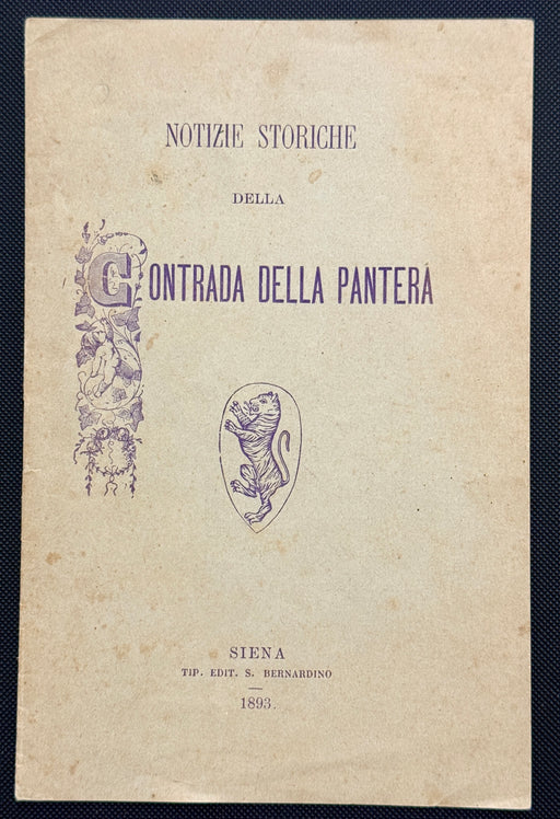 • "Notizie storiche della Contrada della Pantera" libretto Tip. S. Bernardino Siena 1893