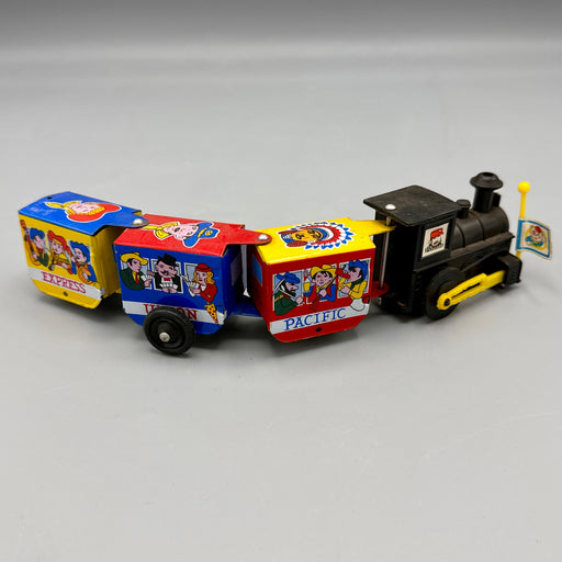 Prezzo originale €0,00 - Prezzo originale €0,00Prezzo originale€0,00€0,00 - €0,00Prezzo attuale €0,00| /Gioco in latta e plastica originale d'epoca. Trenino composto da 4 pezzi.