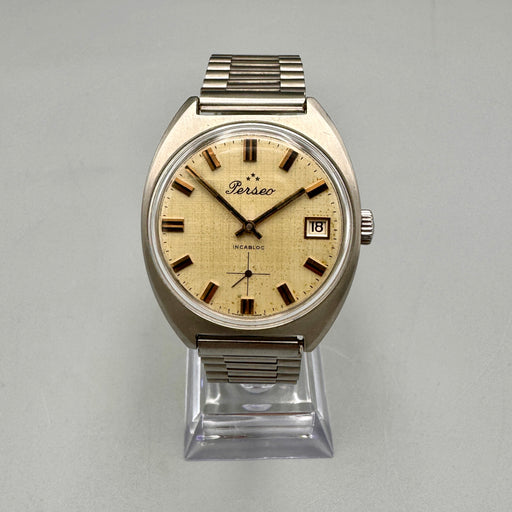 Perseo orologio FS quadrante beige meccanico cromato 36 mm Swiss 1970 ca