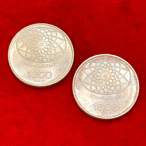 Prezzo originale €0,00 - Prezzo originale €0,00Prezzo originale€0,00€0,00 - €0,00Prezzo attuale €0,00| /Lotto di due monete d'argento 1000 lire Concordia Roma Capitale 1970.