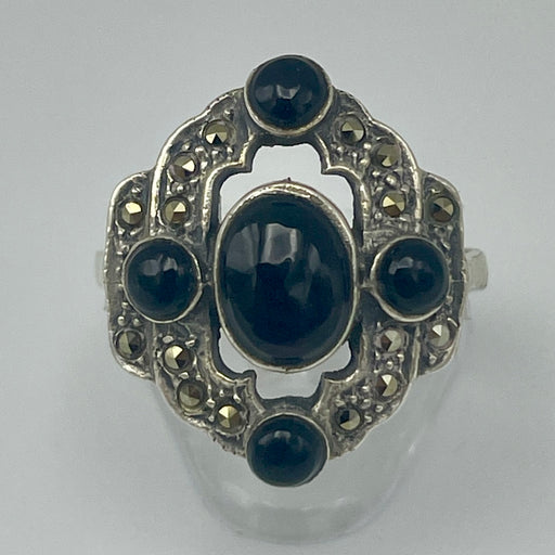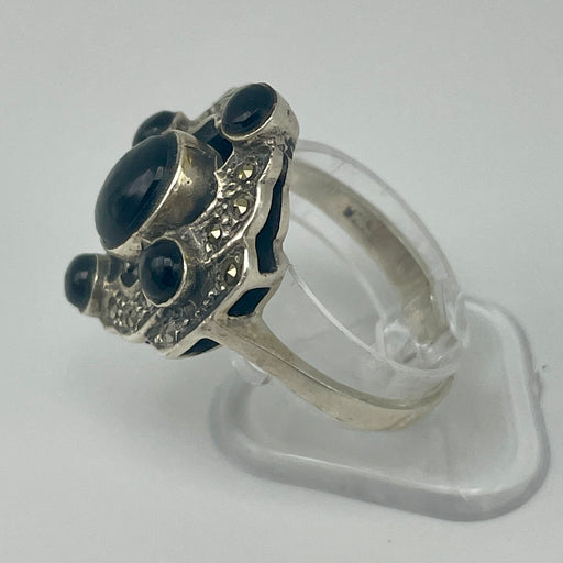 Anello sfere onice argento 925 Italia 1970 ca