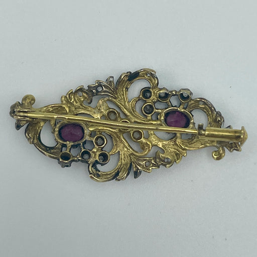 Spilla argento 925 dorato e brunito con pietre Italia 1950 ca
