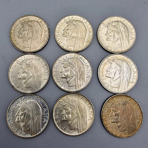 Lotto 9 monete 500 lire argento Dante Alighieri varie annate