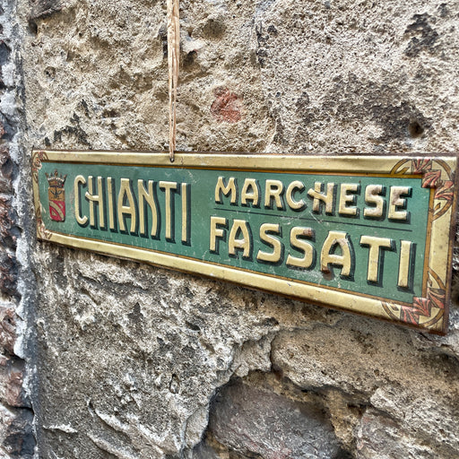 Insegna Chianti Marchese Fassati latta litografata 1910 ca