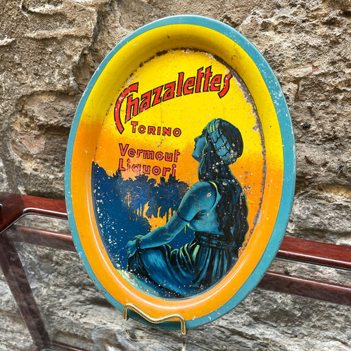Vassoio Chazalettes Torino vermout liquori litografico 1920 ca