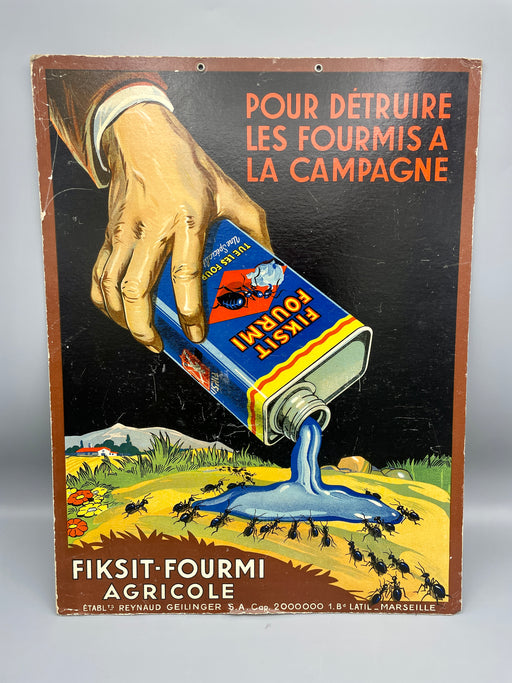 Insegna Fiksit-Fourmi cartone insetticida Francia 1930 ca
