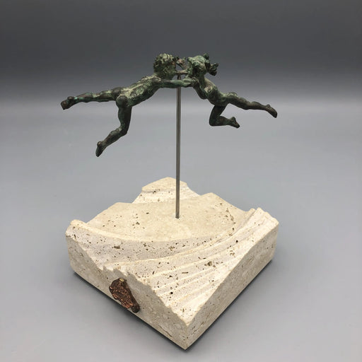 Prezzo originale €0,00 - Prezzo originale €0,00Prezzo originale€0,00€0,00 - €0,00Prezzo attuale €0,00| /Scultura fusione in bronzo con supporto metallico e base in travertino, produzione contemporanea.