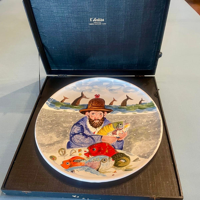 Antonio Possenti – “Spiaggia con balene" – piatto in ceramica Deruta 3/300 – 1980 ca