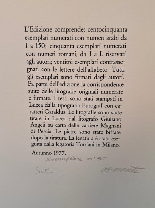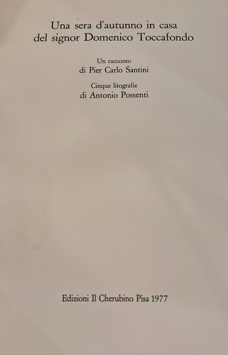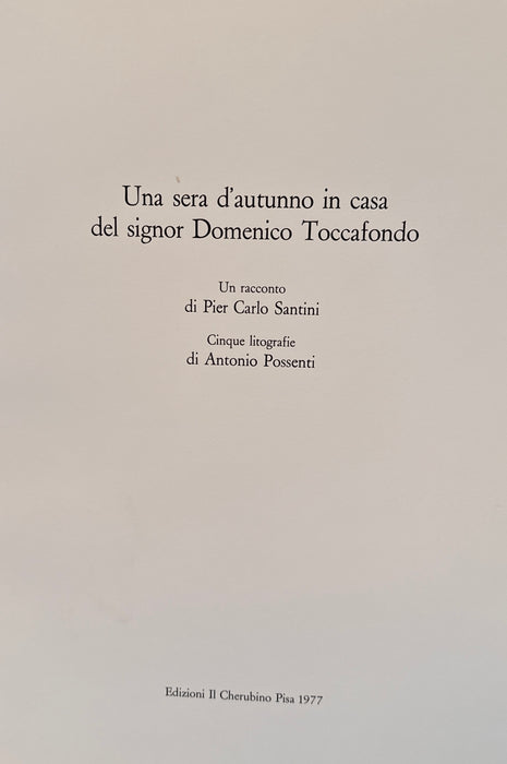 Pubblicazione "Una sera d'autunno in casa del Signor Domenico Toccafondo" completa del testo e delle 5 litografie, edizioni Il Cherubino Pisa 1977. Esemplare numero 36.