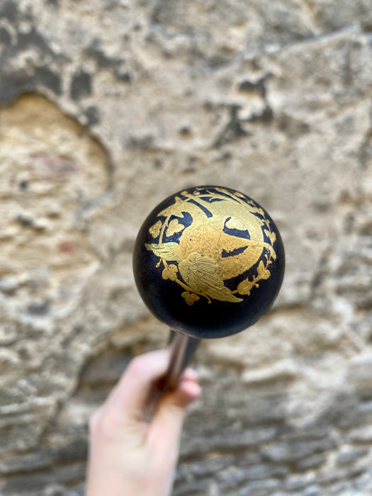 Bastone da passeggio in ebano con pomello ageminato in oro Toledo 1900 ca