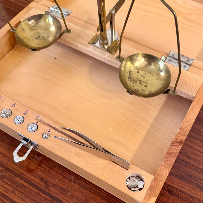Bilancia di precisione orafo portatile ottone scatola legno pesi K2 Cavaria