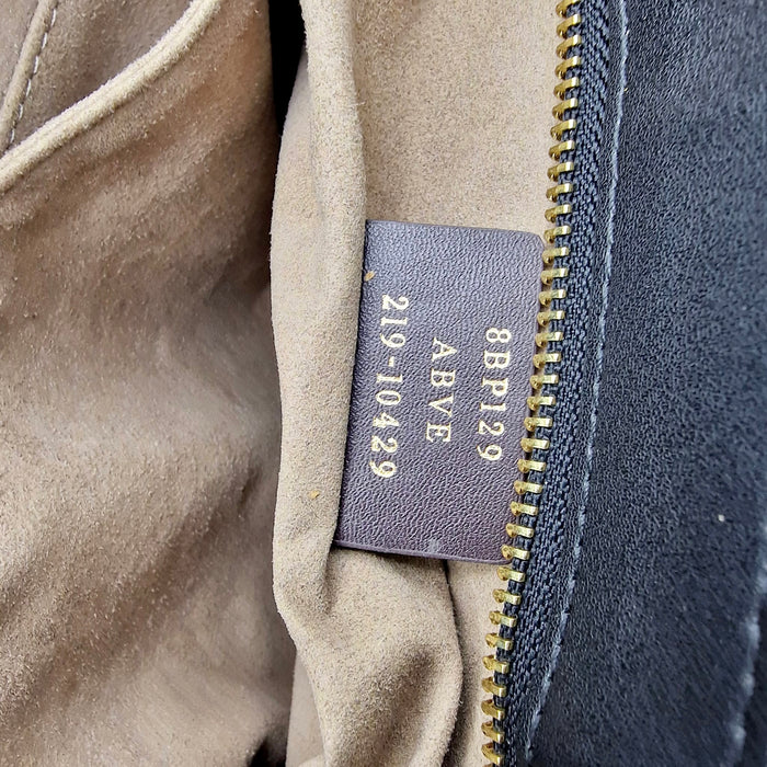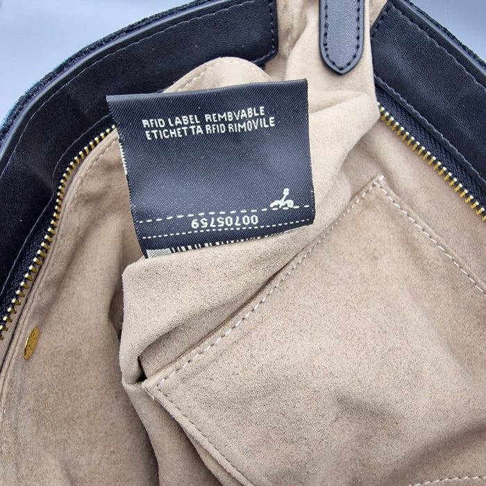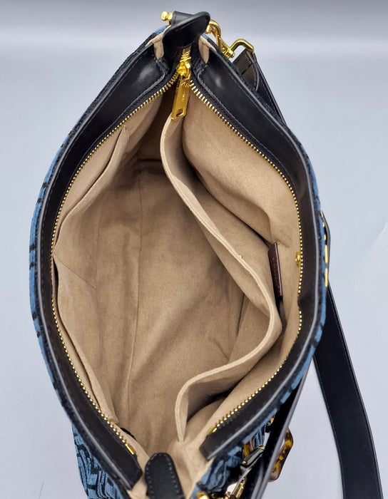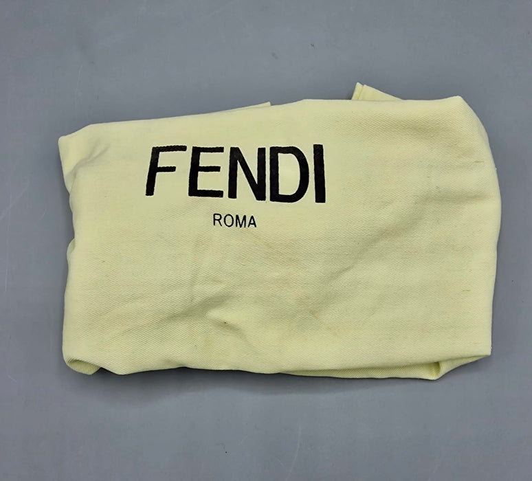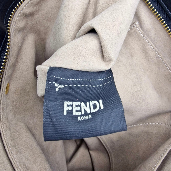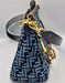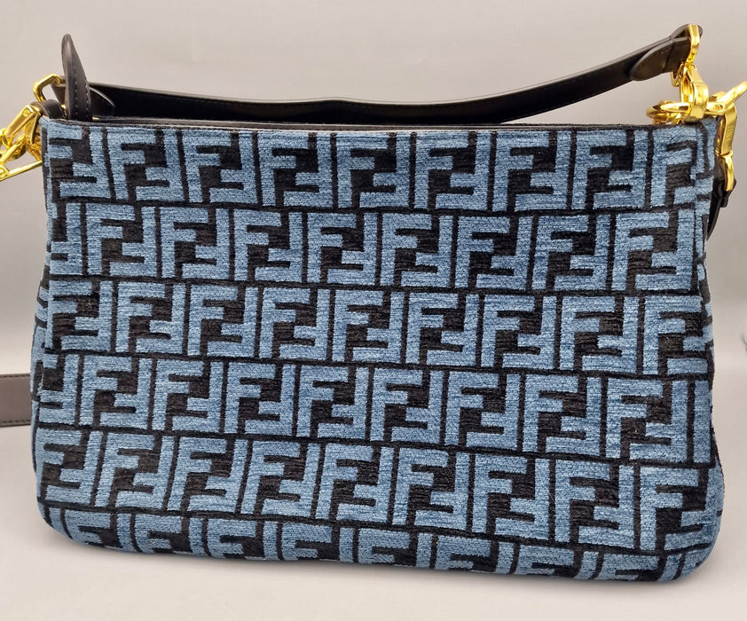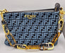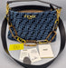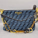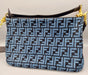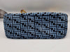 Originale borsa a mano marca Fendi, modello O'Lock. Modello in ciniglia con motivo logo FF blu su fondo nero, completa di catena decorativa e manico in pelle. Presente sua dustbag.