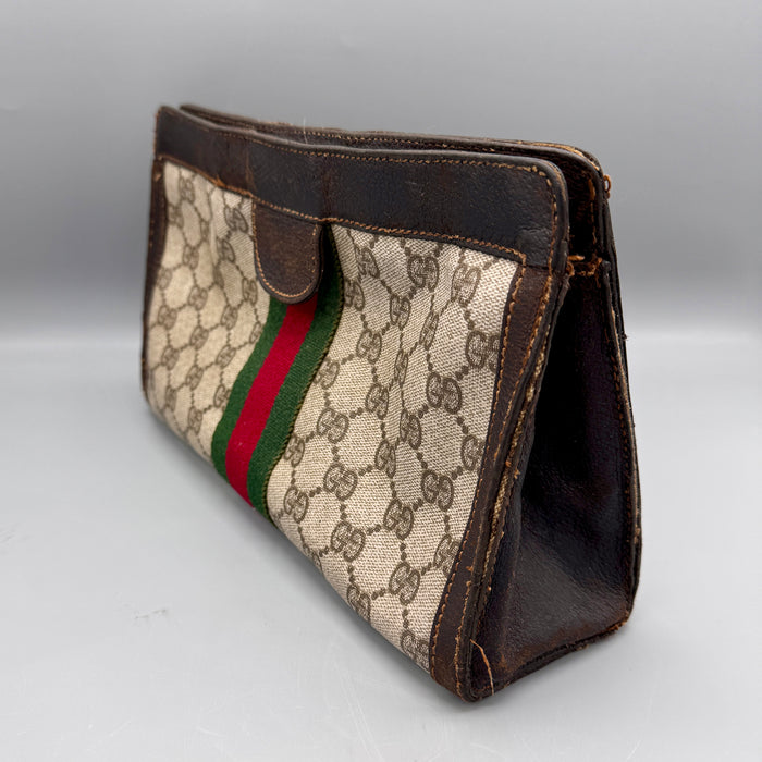 Originale borsa Gucci pochette in tela e pelle vintage.