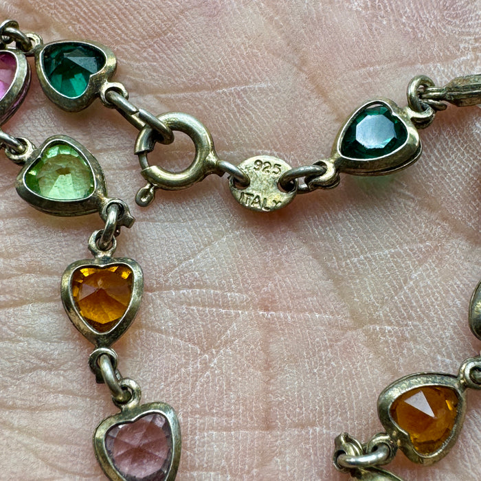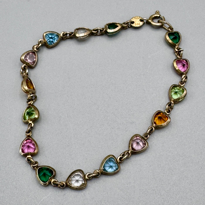 Bracciale in argento 925 tennis cuoricini multicolor Italia 1990 ca