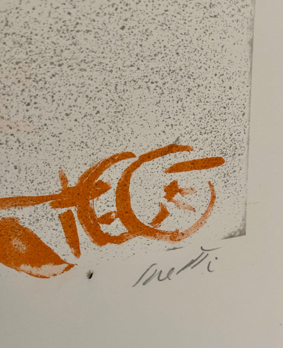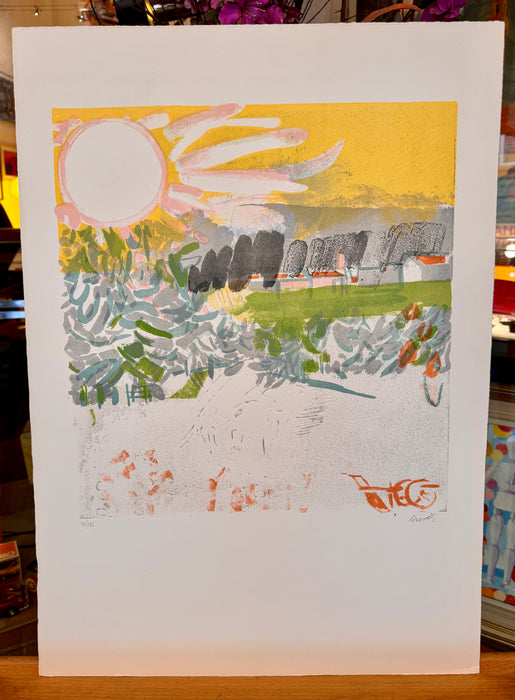 Litografia del Maestro Bruno Saetti, titolo "Sul prato del mulino", numerazione 70/125. Opera facente parte della cartella "Il Prato del Mulino" edito da Edizioni Graphis Arte.