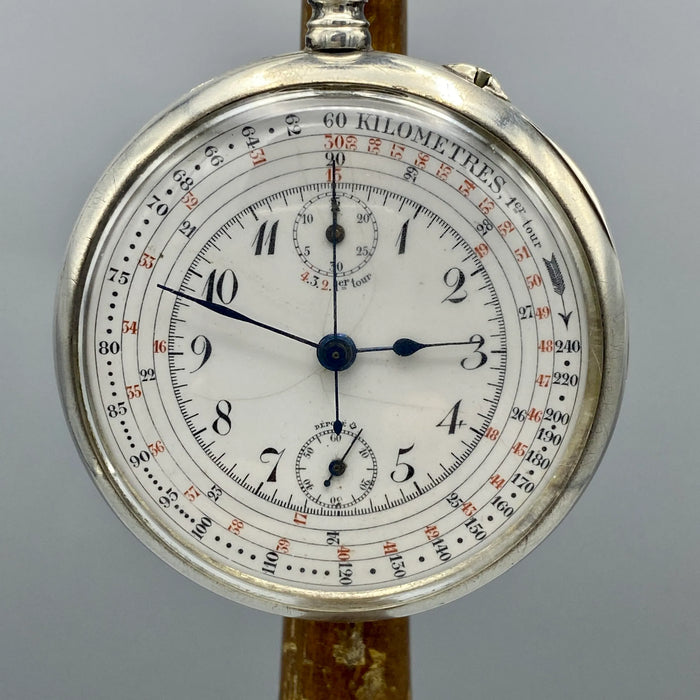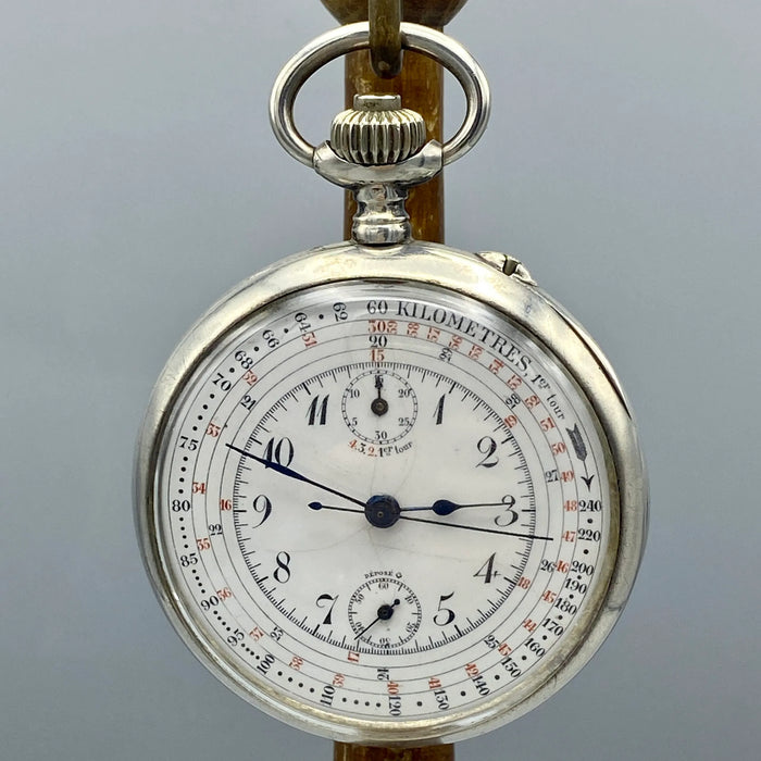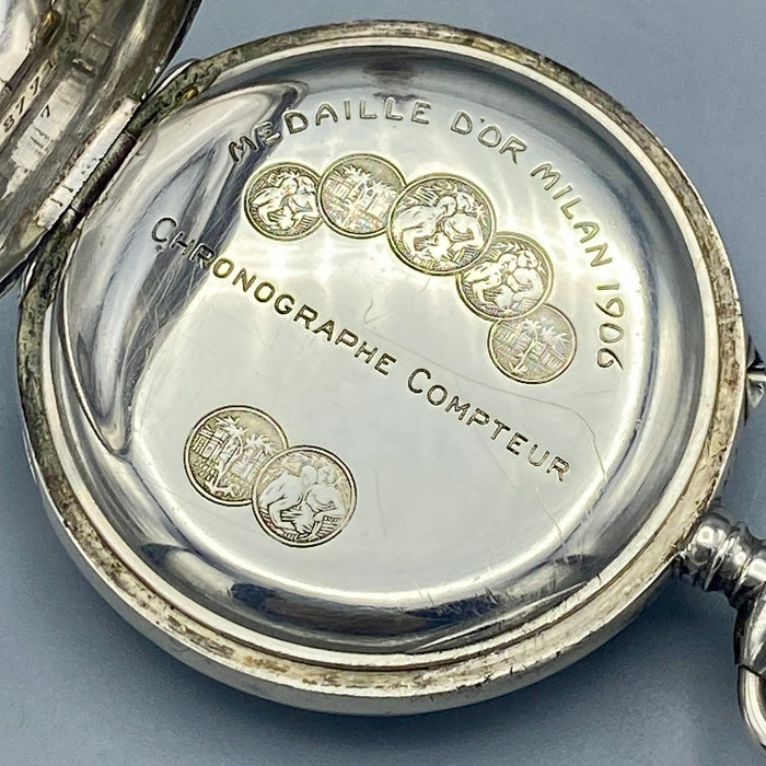 Chronographe Compteur orologio tasca argento medaglia Milano 51mm Swiss 1910 ca
