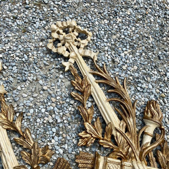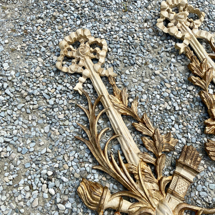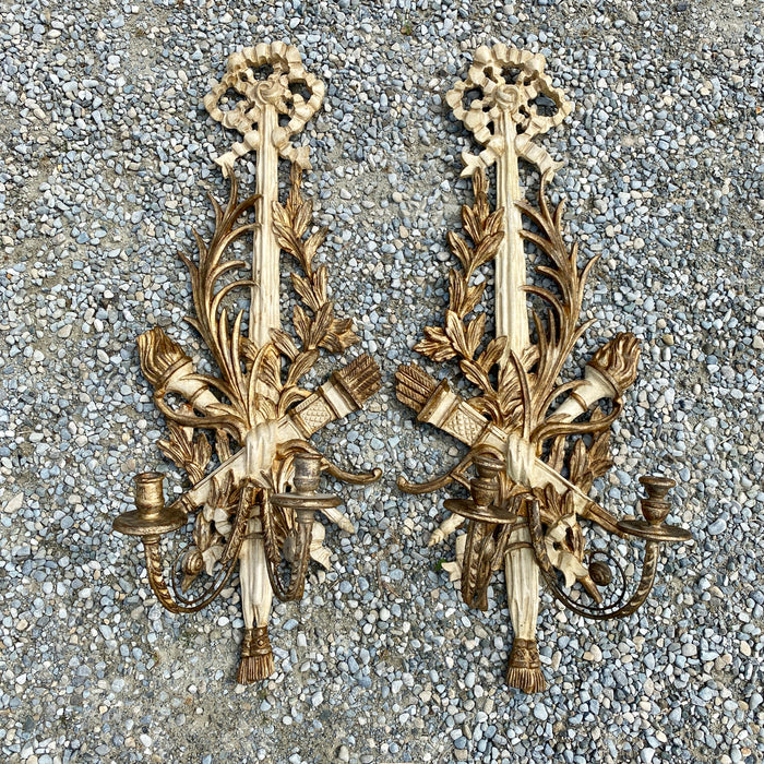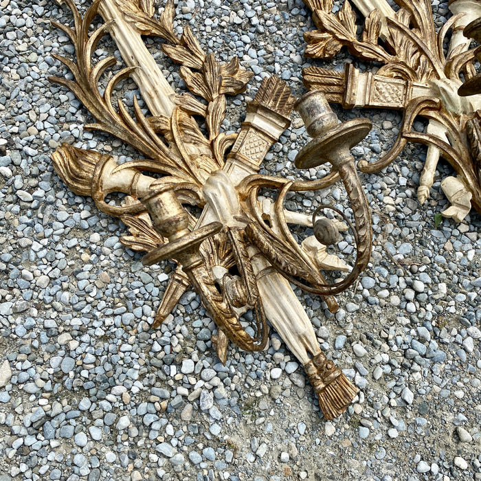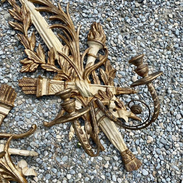 Antica coppia di applique, impero Italiano. Legno policromo, lievi difetti ma condizioni di conservato. Spazio per 4 candele. Non elettrificate, coeve.
