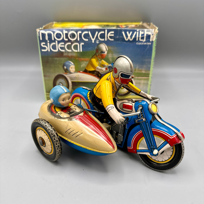 Gioco in latta originale d'epoca. MS709 Sidecar a carica funzionante con scatola.