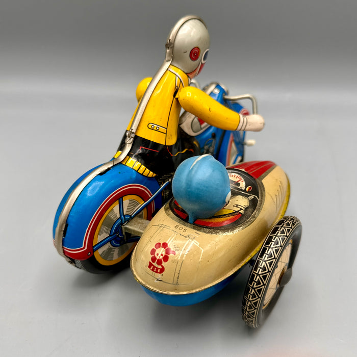 Gioco latta MS 709 Motocicletta con sidecar carica manuale 1960 ca