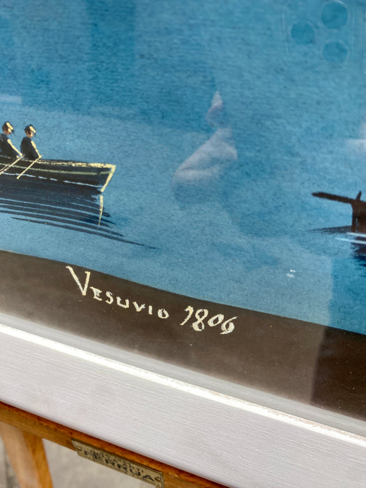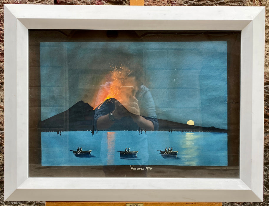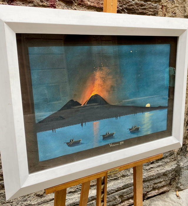 Originale gouache su carta Napoletana della fine dell'ottocento, titolo "Vesuvio 1806". Cornice da noi applicata.