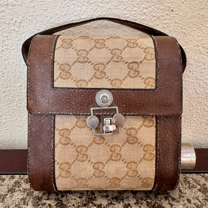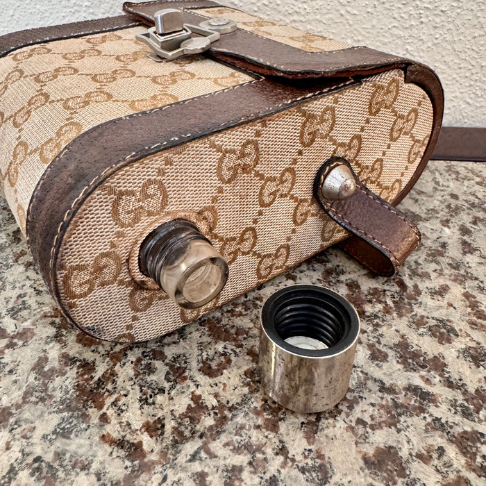 Gucci borsa a mano vintage porta bottiglia whisky con coppia bicchieri 1970