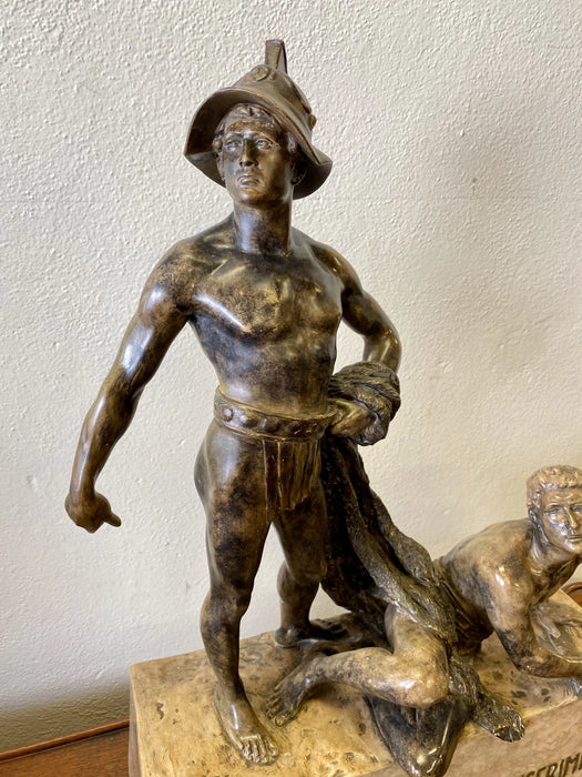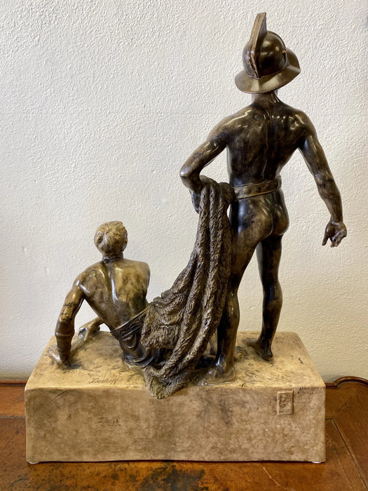 Scultura in terracotta dipinta, realizzata dalla Goldscheider i primi anni del XX secolo su modello di Harinoff. Titolo dell’opera “In discrimine”, leggeri restauri da noi commissionati per sistemare piccole screpolature e ridare una patina omogenea all’intero gruppo scultoreo. Spese di spedizione da concordare prima dell'acquisto.