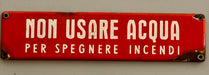 Insegna smaltata "Non usare l'acqua per spegnere incendi" Smalterie Lo — Galleria Novecento