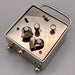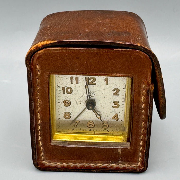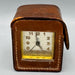 Orologio da tavolo comodino marca Junghans, movimento meccanico carica manuale tedesco 21 jewels, funzionante. con sua custodia in pelle.
