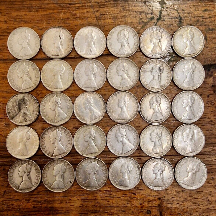 Lotto di 30 monete da 500 lire argento come da foto, tutte caravelle varie annate e condizioni. Non ripulite, come da ritrovamento.